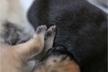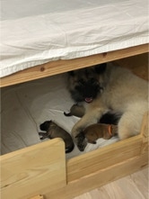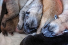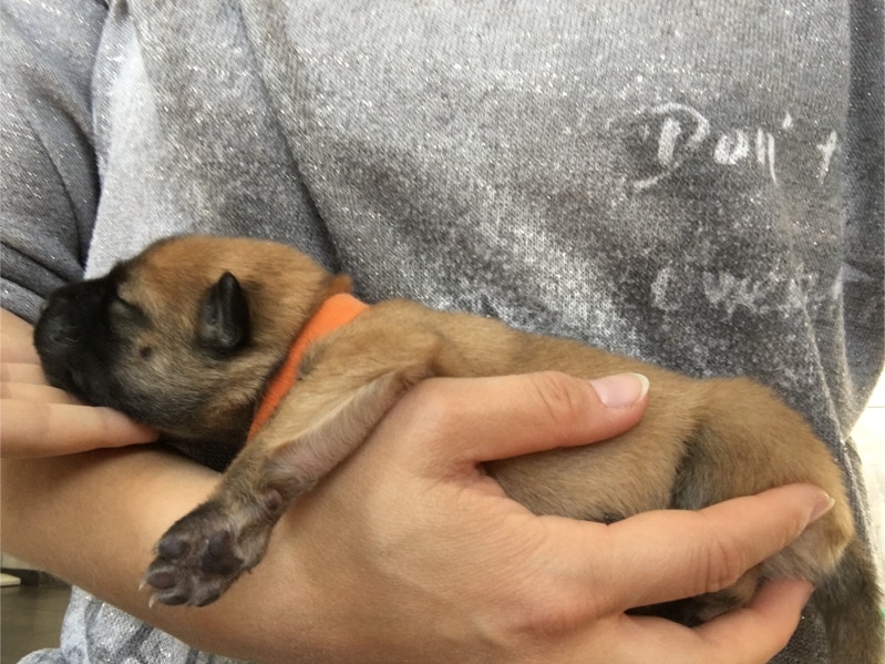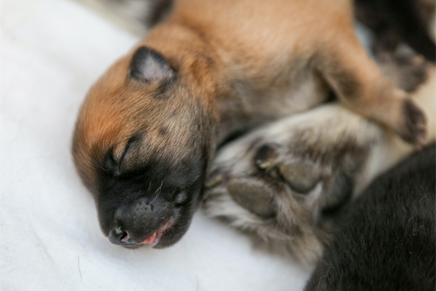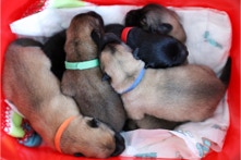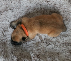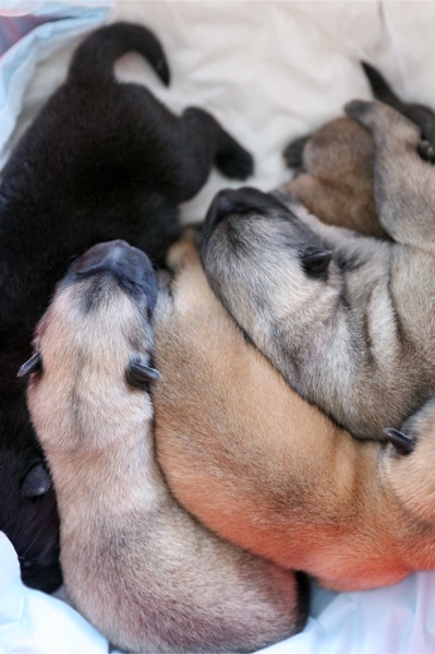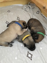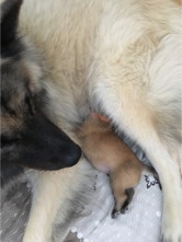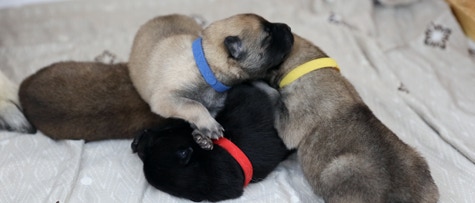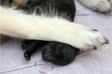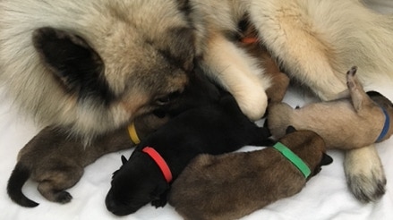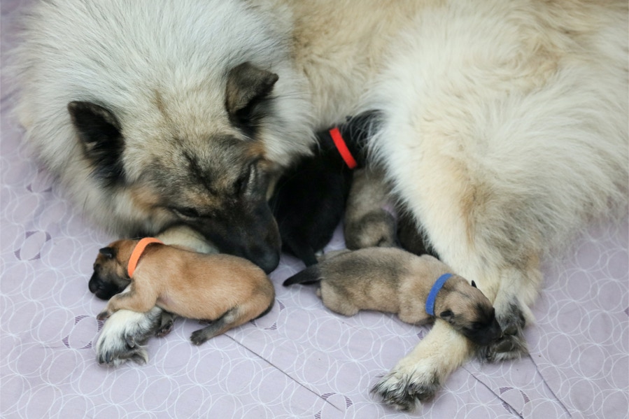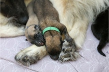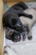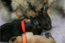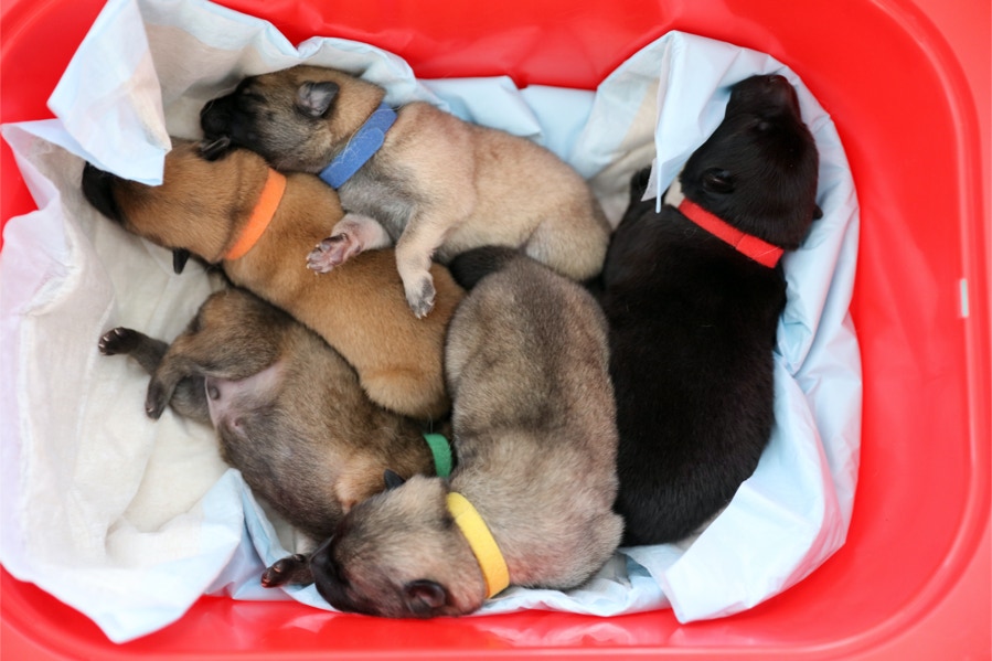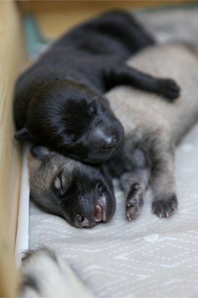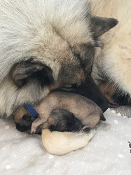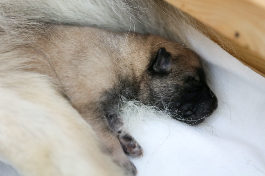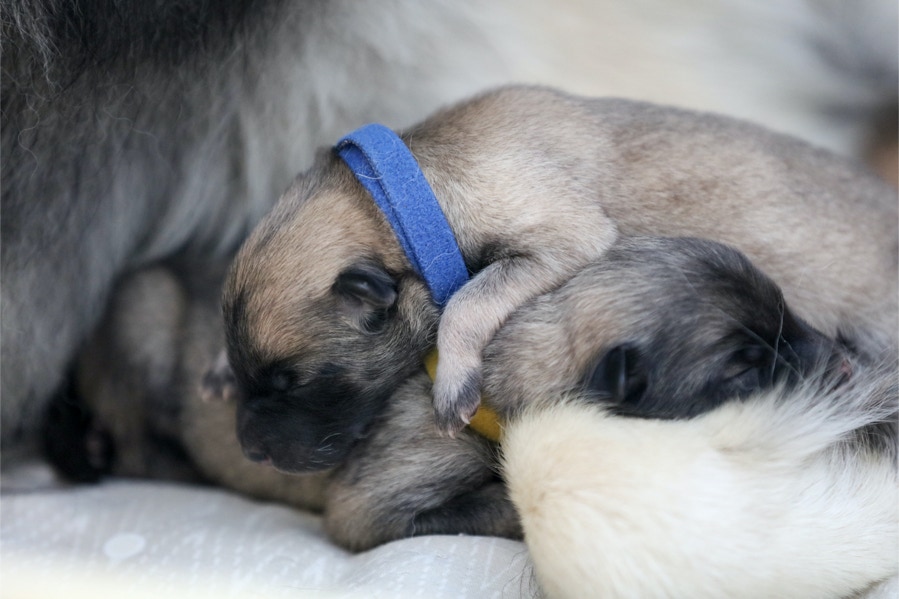 Alle Welpen entwickeln sich prächtig. Sie nehmen gut zu und sind sehr munter. Mama Akina Luh kümmert sich sehr gut um ihre Kleinen. Sie ist aufmerksam und gönnt sich jetzt auch mal eine kleine Pause außerhalb der Wurfbox.