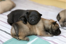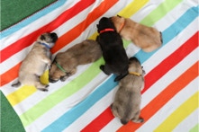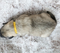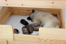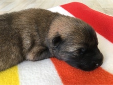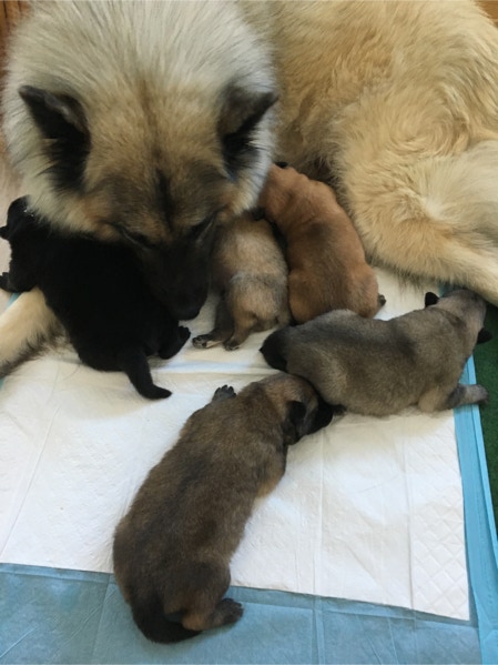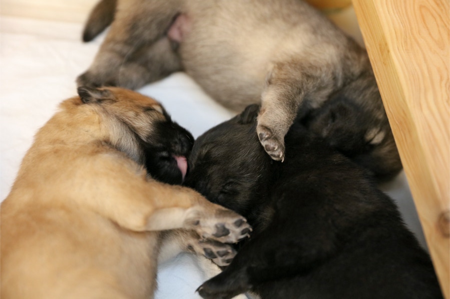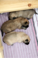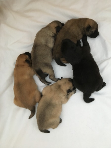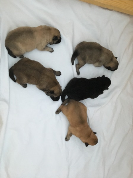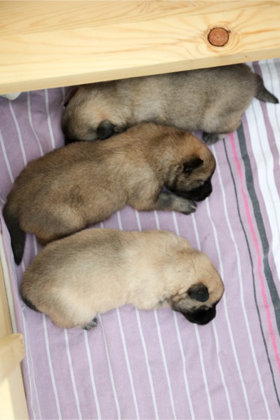 Die Welpen haben alle ihr Geburtsgewicht verdreifacht. Die Ersten öffneten ihre Augen. Amigo, Akani, Azzuro, Ayk, Atos, Aro, Asko, Aris, Ares, Apollo, Ace ? Wir sind schon gespannt wie Allys Brüder heißen werden.