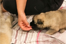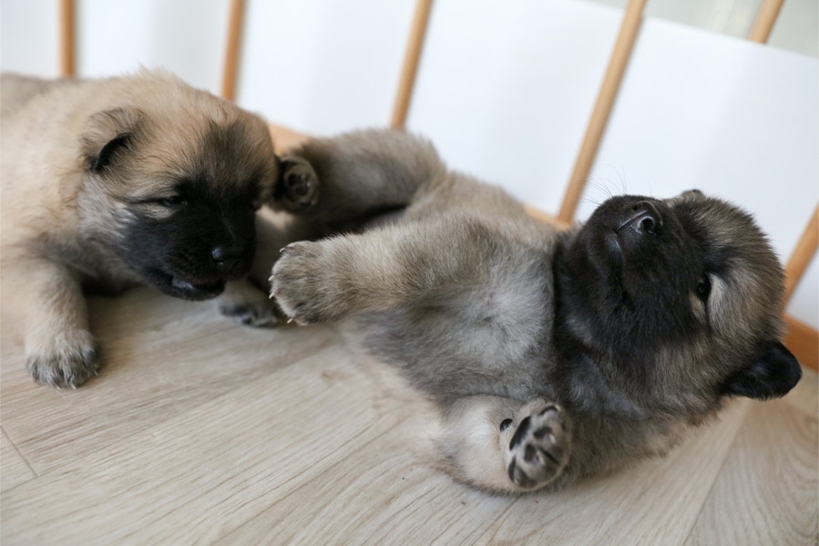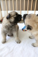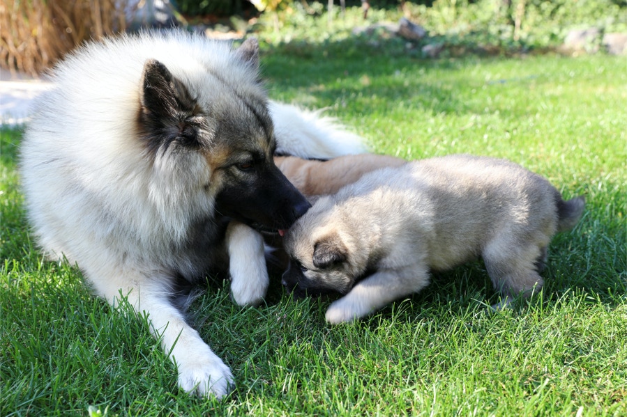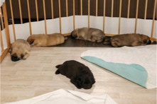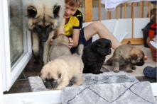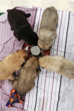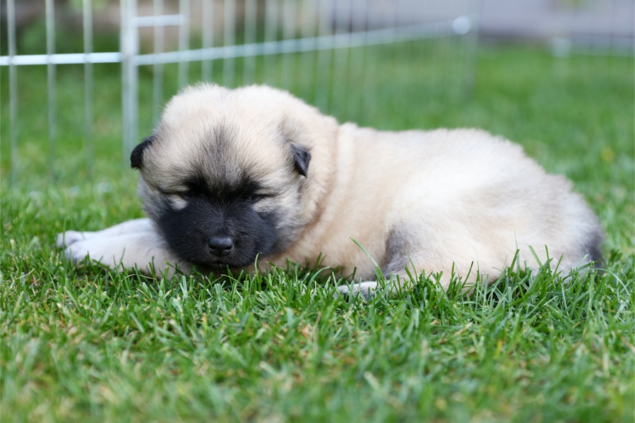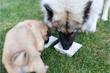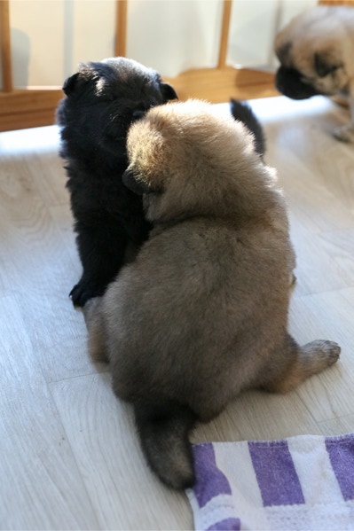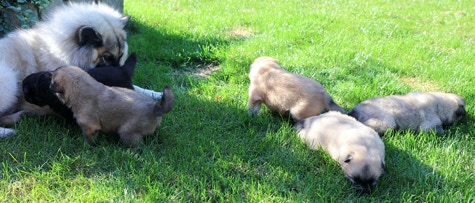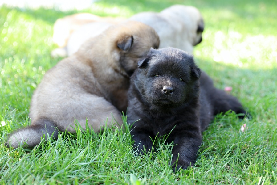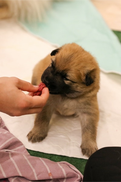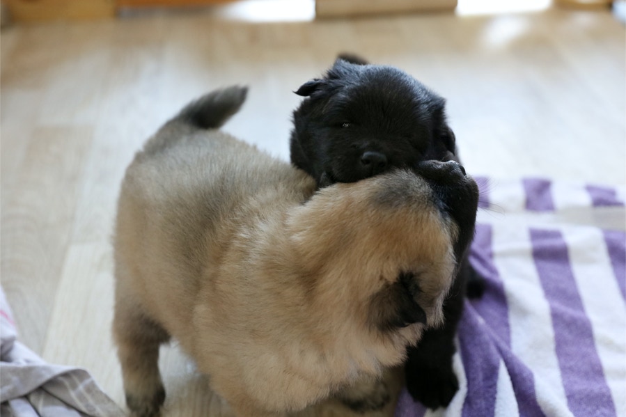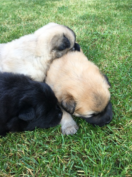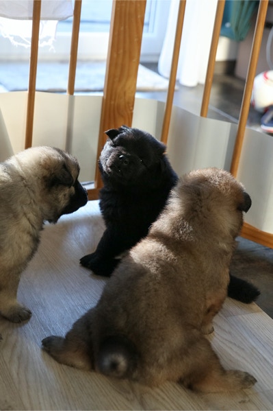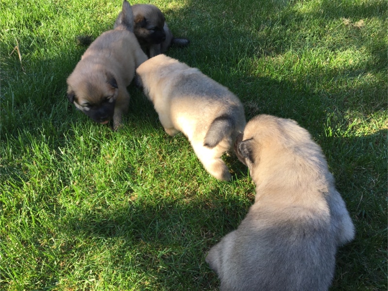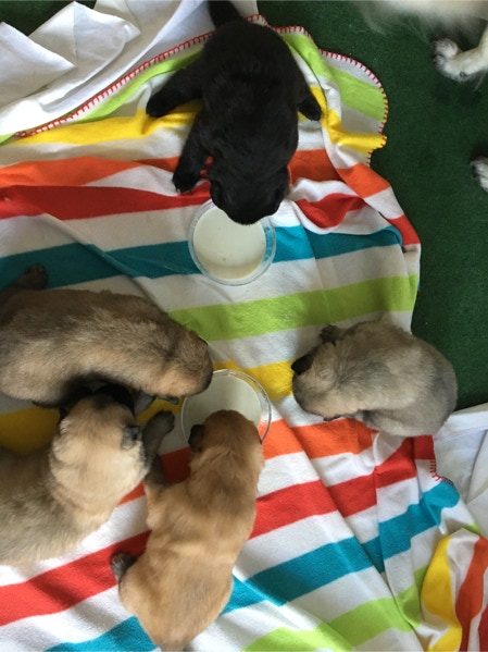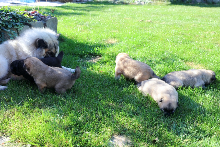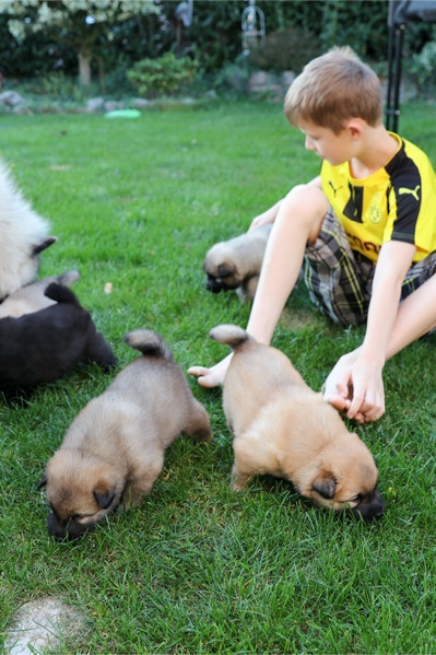 Die Woche startete mit der ersten Wurmkur. Die Kleinen spielen miteinander und durften diese Woche zum ersten Mal aus dem Napf schlabbern. Auch der Garten wird bei dem schönen Wetter erobert.