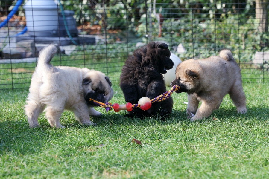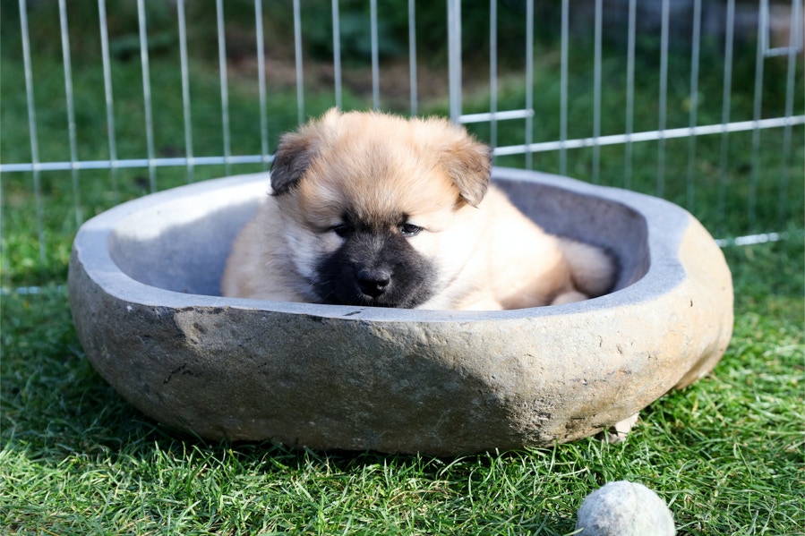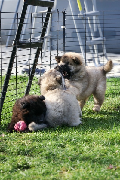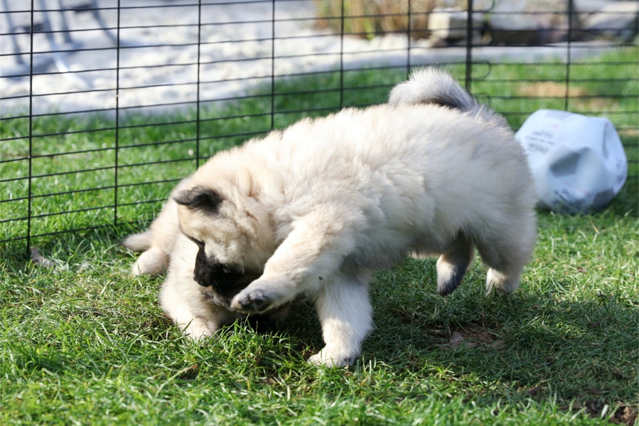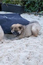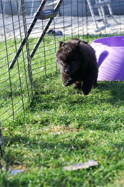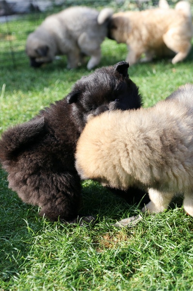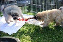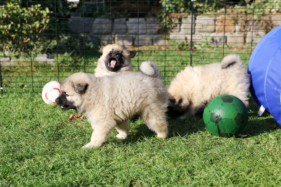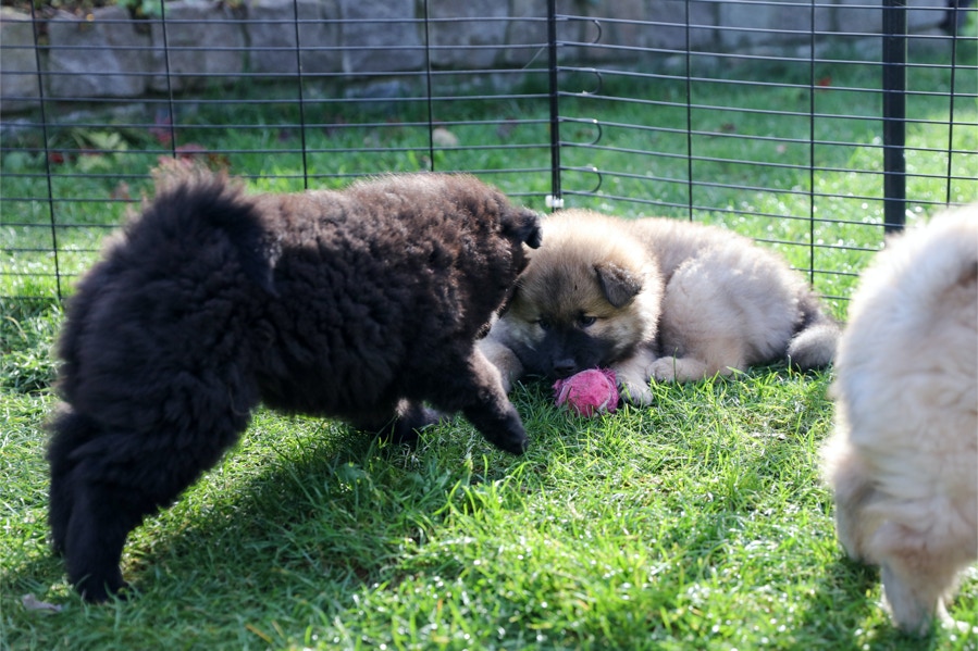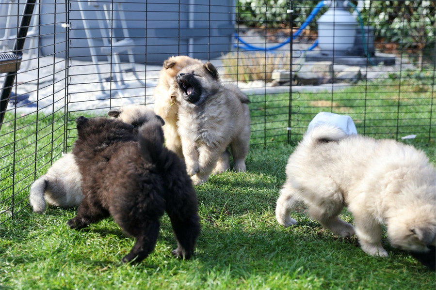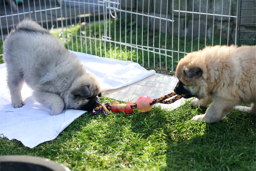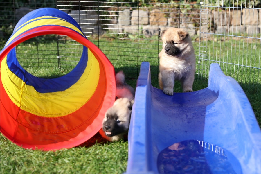 Die Welpen erobern jeden Tag ein Stückchen neue Welt im Garten und Haus.