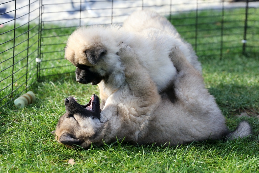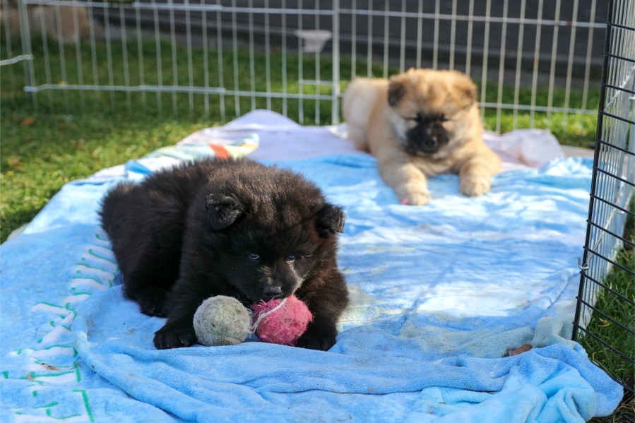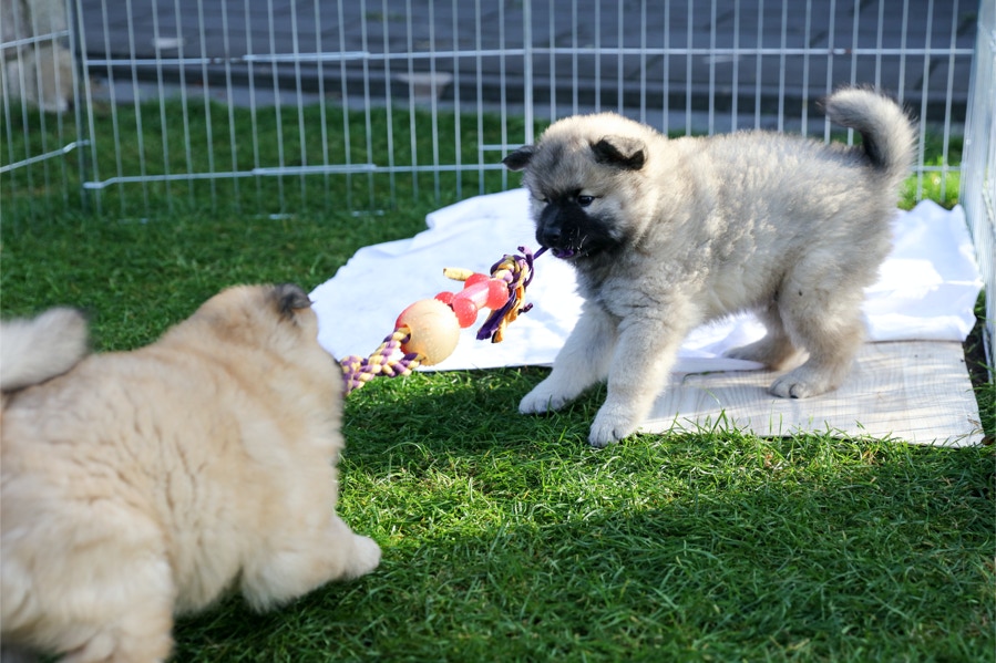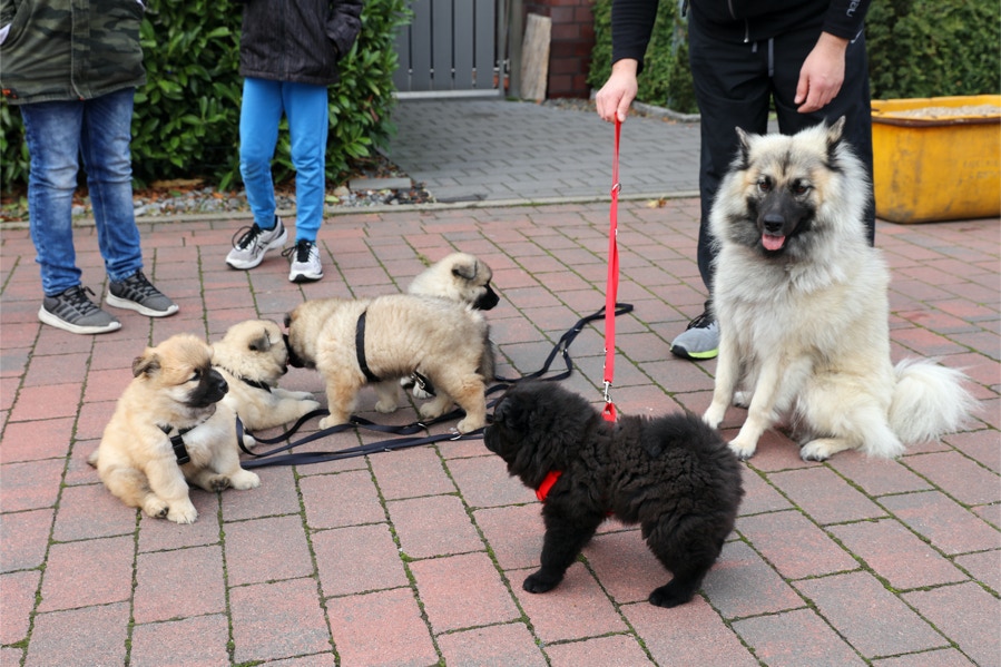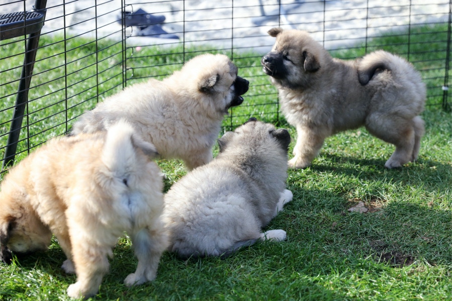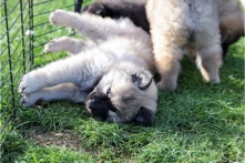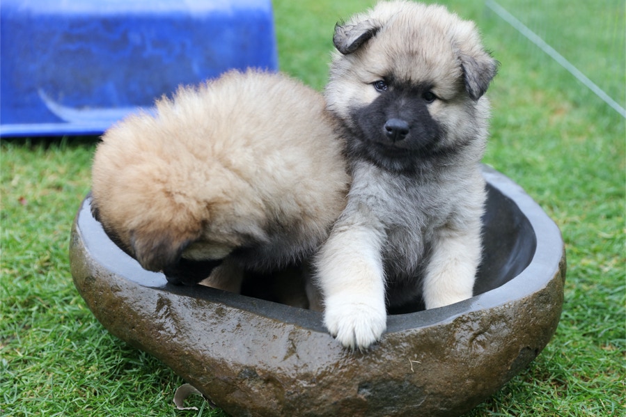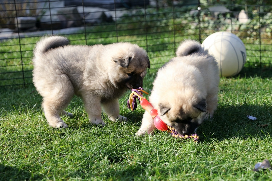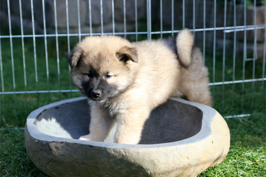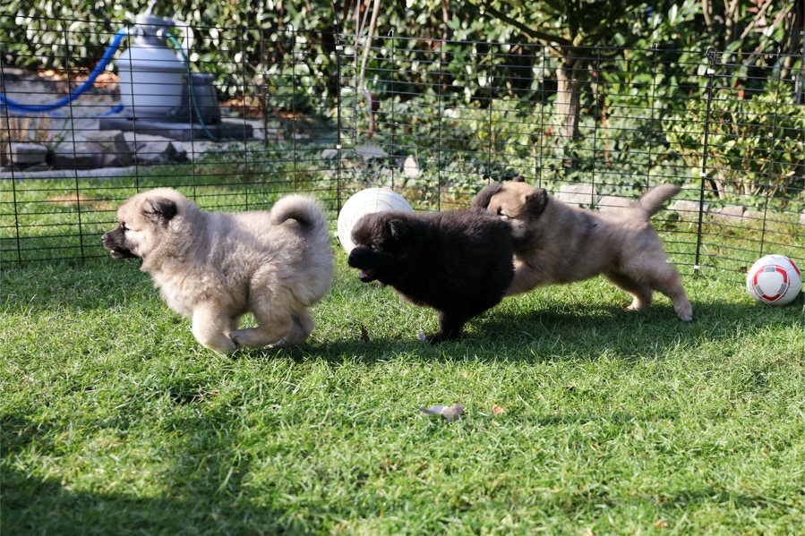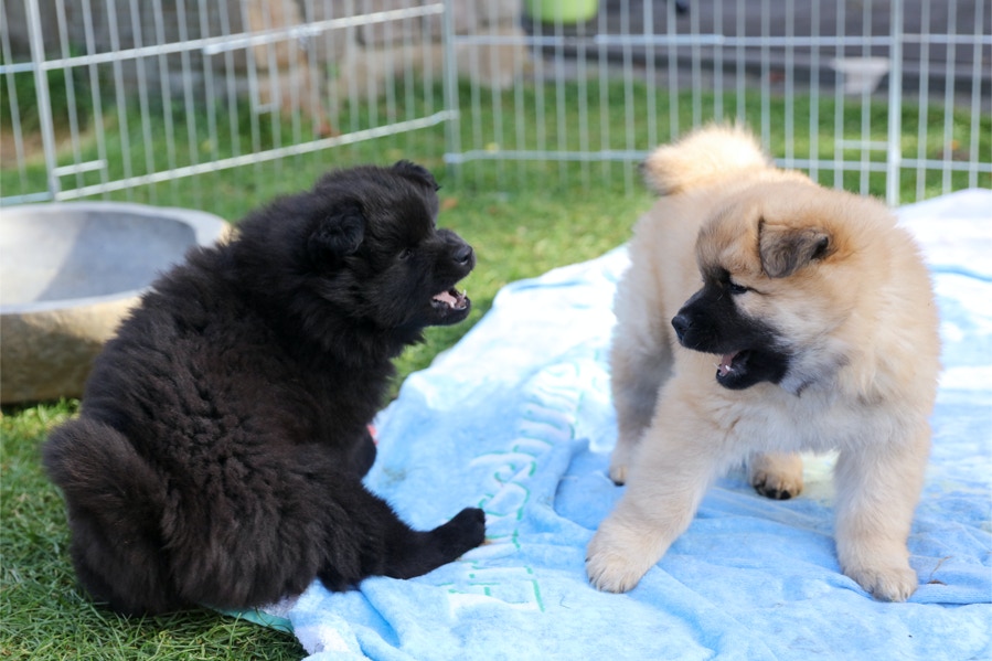 Die Welpen erobern jeden Tag ein Stückchen neue Welt im Garten und Haus.