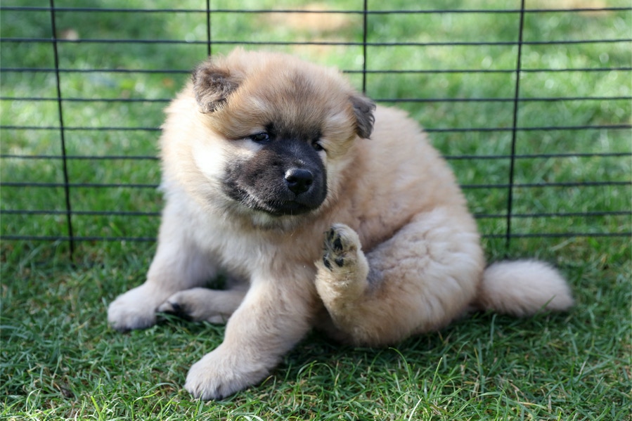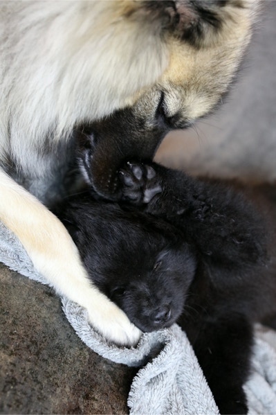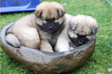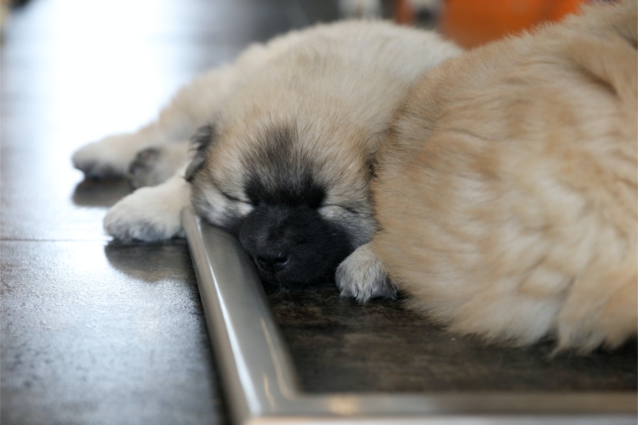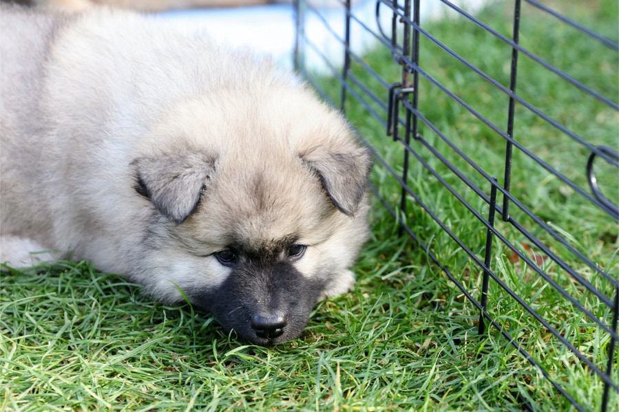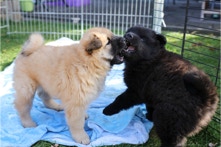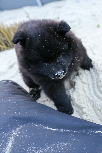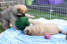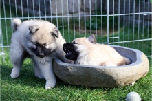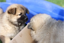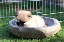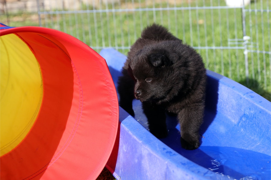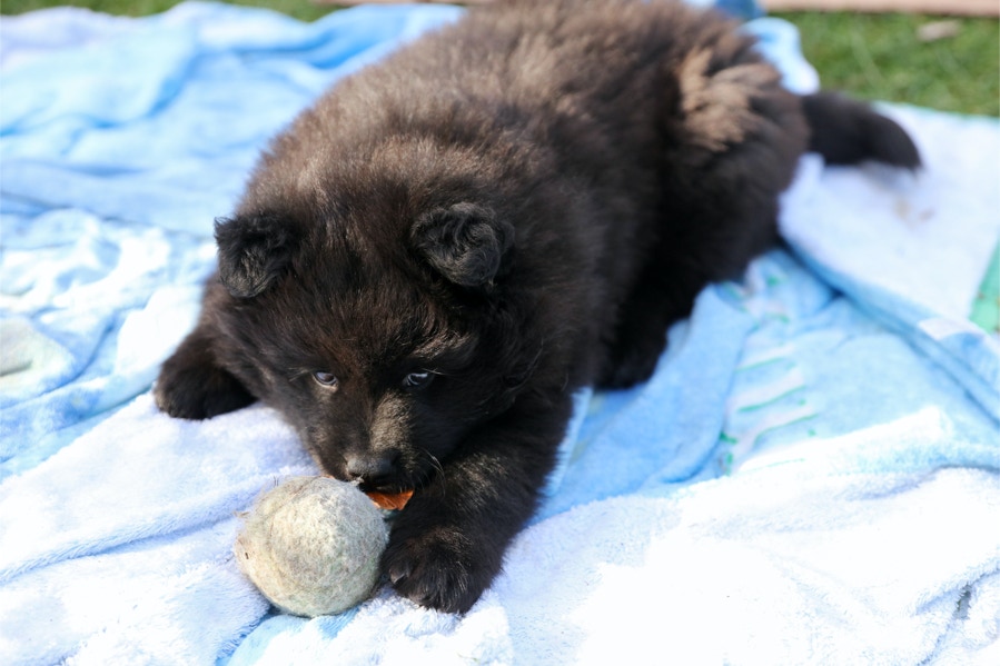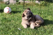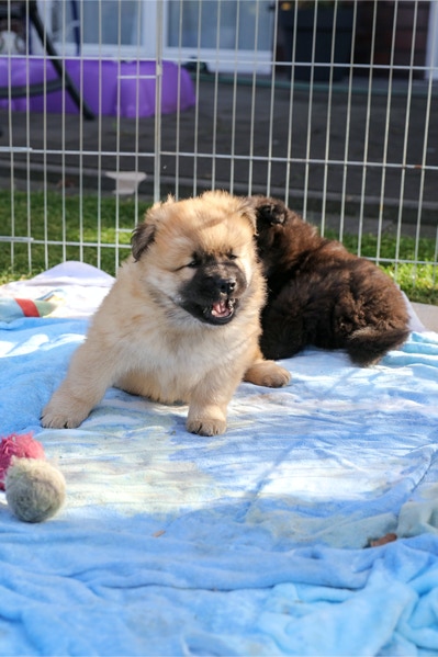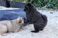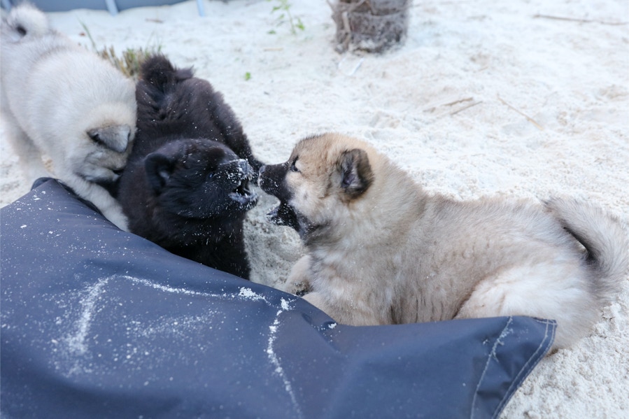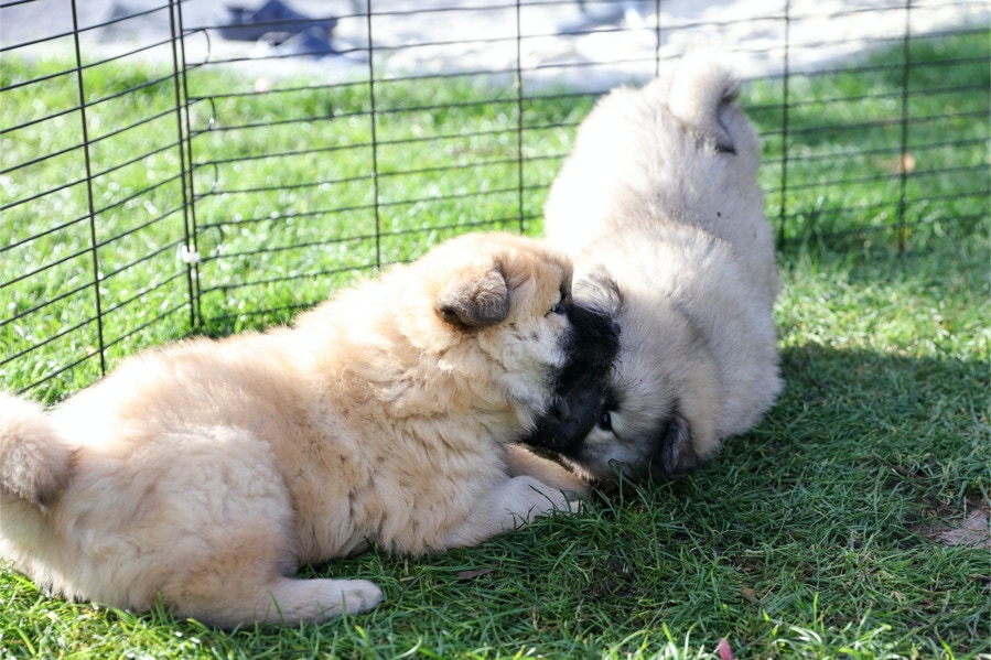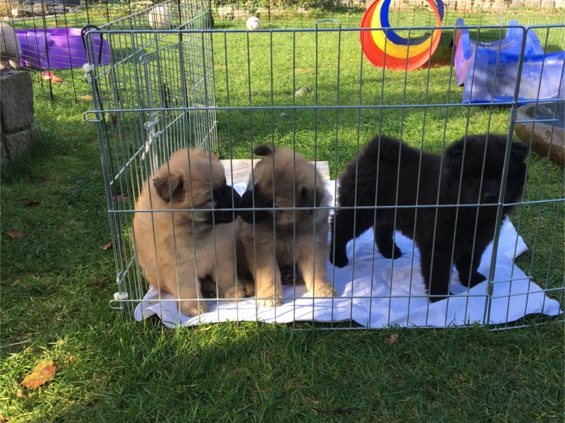 Die Welpen erobern jeden Tag ein Stückchen neue Welt im Garten und Haus.