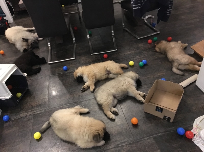 Eine aufregende Woche. Den ersten Tierarztbesuch meisterten die Kleinen mit Bravur. Bei der Welpenabnahme zeigten sie sich von ihrer besten Seite. Nun heißt es Abschied nehmen. Sie brauchen alle ihren eigenen Wirkungskreis.