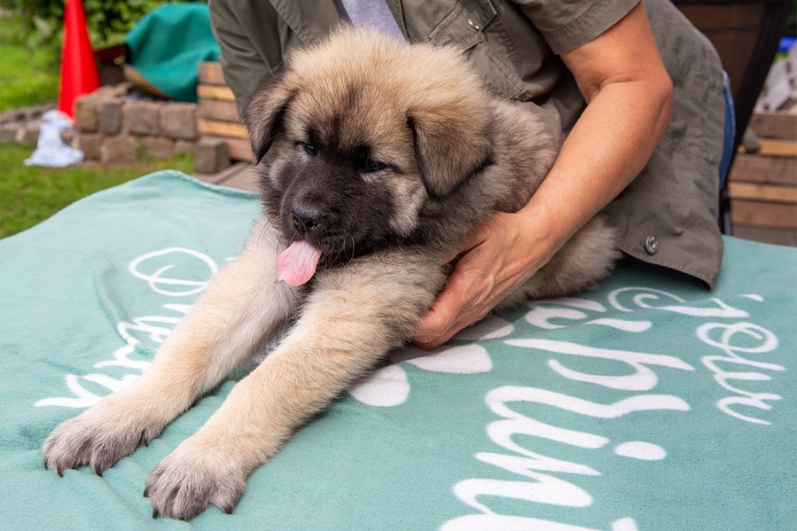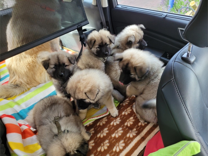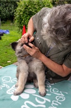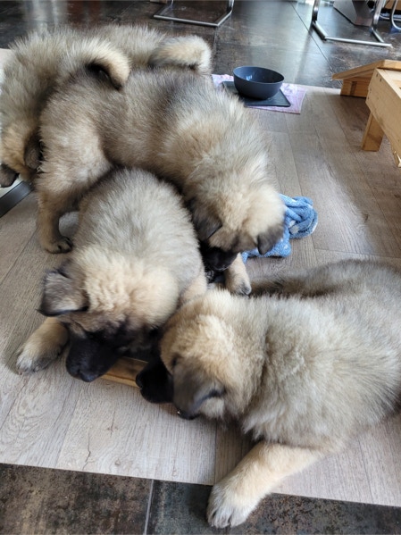 Eine ereignisreiche Woche: Die Welpen haben ihren ersten Tierarztbesuch gemeistert. Bei der Wurfabnahme haben sie sich von der kuscheligen Seite gezeigt. Jetzt heißt es für uns Abschied nehmen. Sie starten in ihr neues Leben.